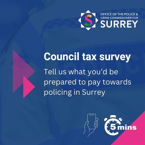 “It is important to me to find out what Surrey residents think and whether they would be willing to pay a little extra to support our policing teams again this year. So I would ask everyone to take a minute to fill out our brief survey and give me their views.” Find out more on the Commissioner’s dedicated council tax webpage. You can also visit the ‘Frequently Asked Questions’ page. |